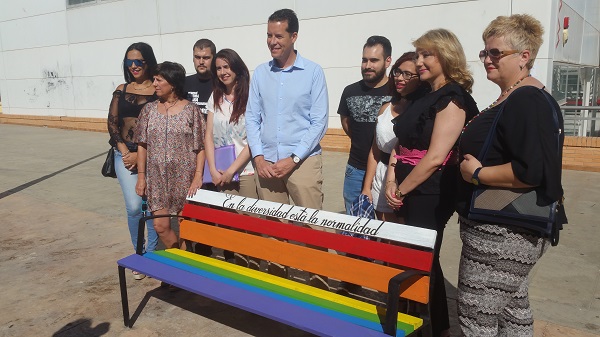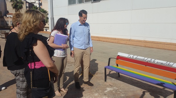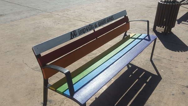 El Ayuntamiento de Elda ha querido mostrar su reconocimiento y al colectivo LGTBI pintando tres bancos de la plaza de la Ficia con la bandera arcoiris para que “durante todo el año recordemos los valores que inspiran este día del Orgullo Gay: respeto y tolerancia hacia todas las opciones sexuales”, ha indicado el alcalde, Rubén Alfaro.