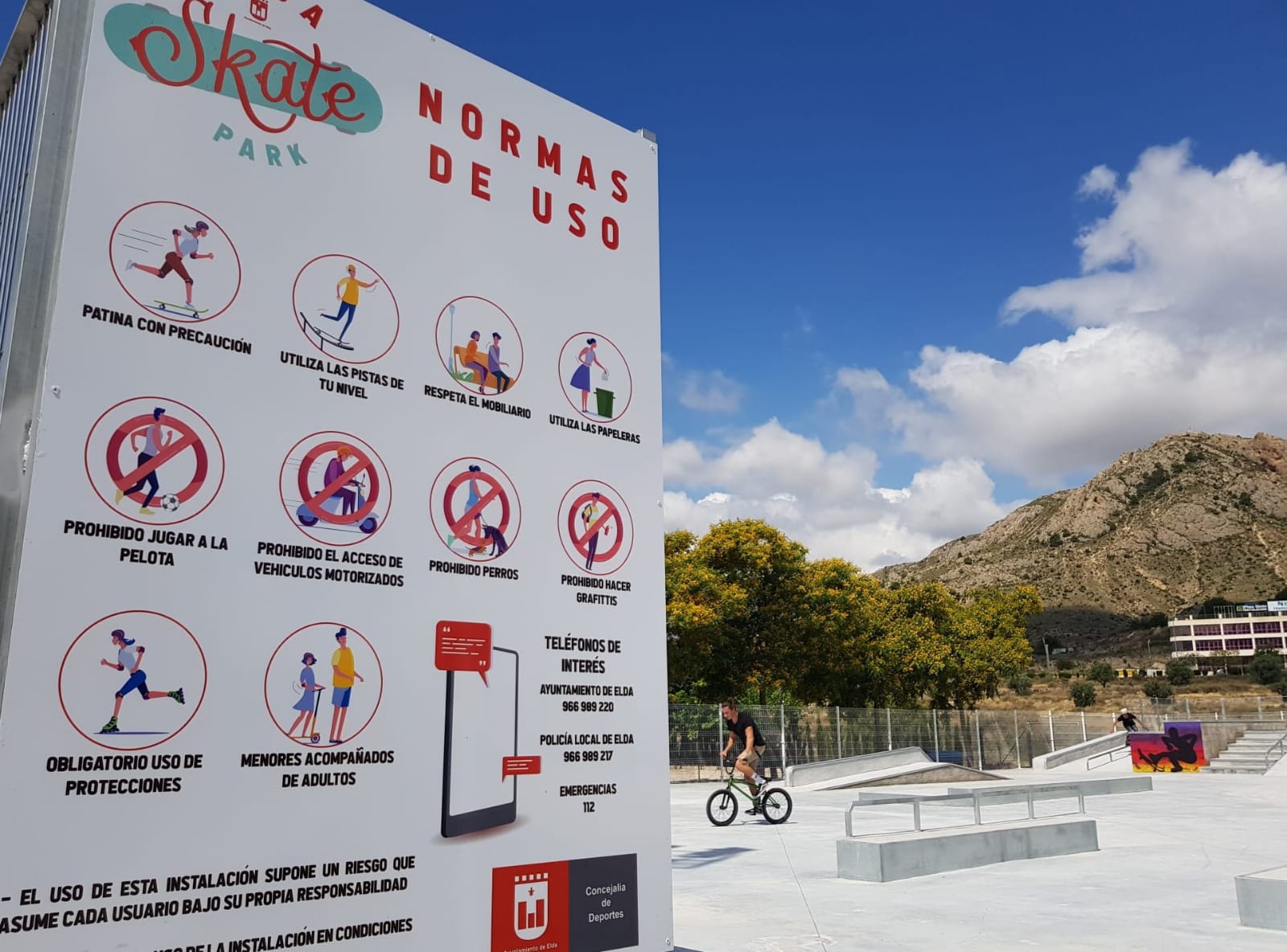 El nuevo Skate Park de Elda tiene una superficie de 800 metros cuadrados, dispone de diferentes rampas y zonas para realizar piruetas y saltos, y cuenta con luz artificial. Las obras han contado con un presupuesto de 224.000 euros.