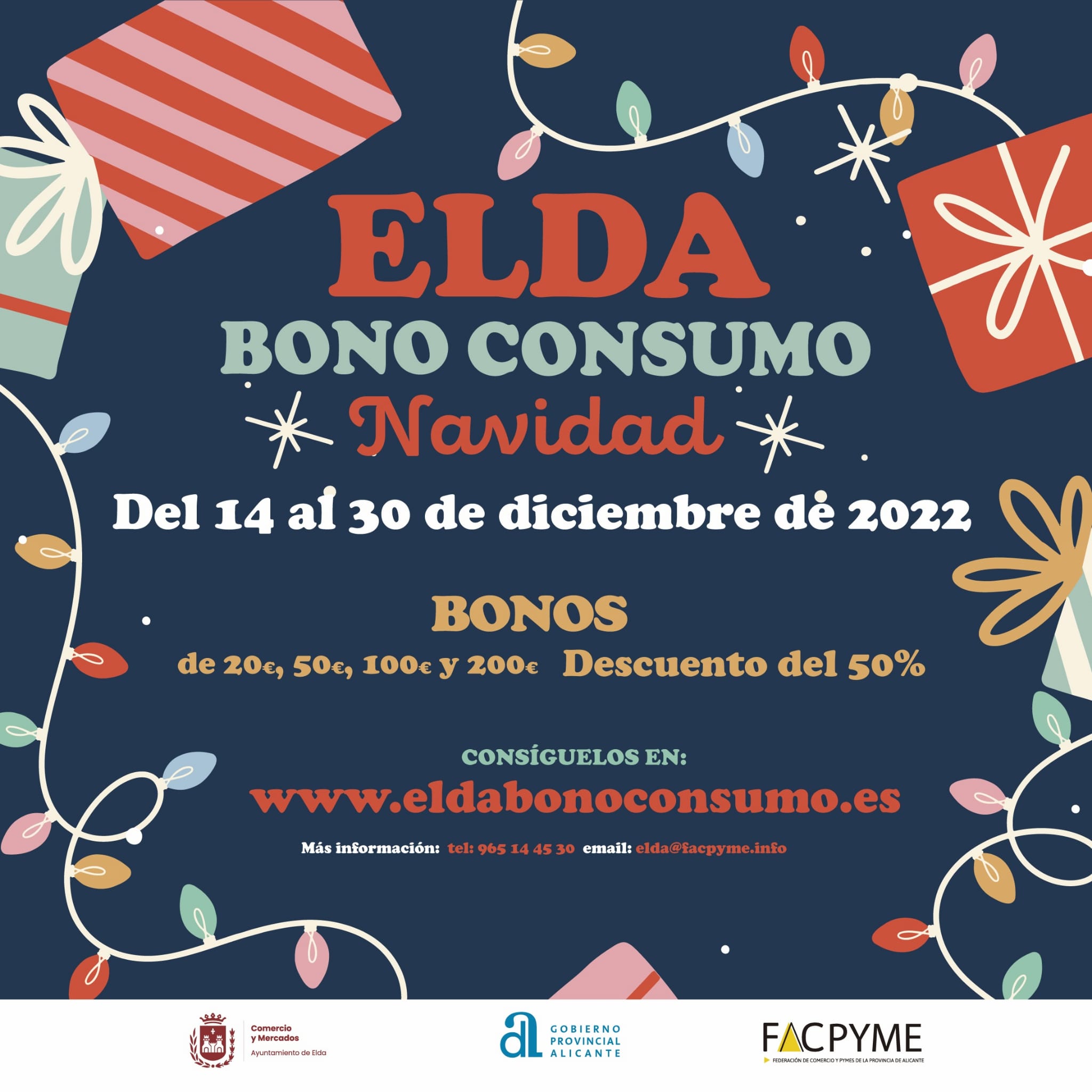 El Ayuntamiento de Elda, a través de Idelsa y de la Concejalía de Comercio y Mercados, pone en marcha a partir de mañana el Bono Consumo Navidad, una iniciativa que tiene como objetivo incentivar las compras y el consumo en el comercio, la hostelería y los servicios de nuestra ciudad.