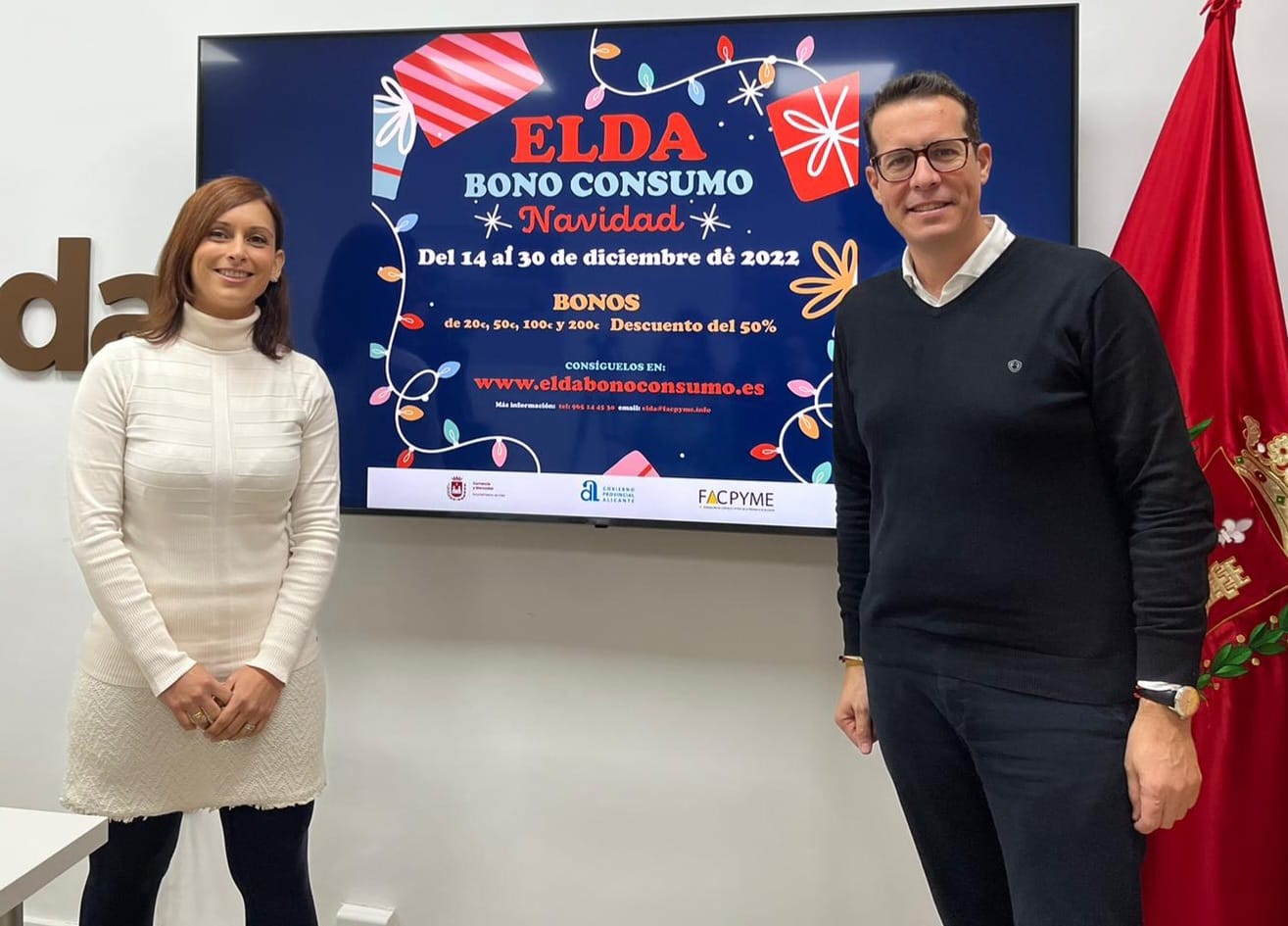Alfaro ha destacado que “el Bono Consumo Navidad 2022 cuenta con un presupuesto de 266.868 euros en bonos, de los que cada persona empadronada en Elda podrá disponer de un máximo de 200 euros, de los cuales sólo deberán abonar la mitad (100 euros). Es decir, esta campaña permitirá inyectar 533.736 euros en el tejido comercial de nuestra ciudad durante las próximas dos semanas”.