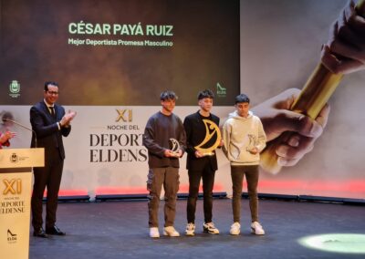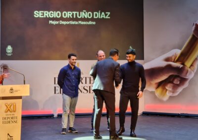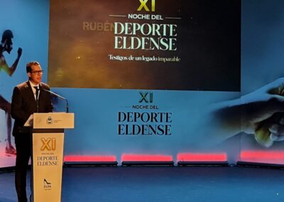El regidor eldense ha afirmado que “cada uno de los nominados y nominadas que habéis cruzado este escenario lleváis con vosotros el legado de familias que han invertido tiempo y amor para apoyaros y estar a vuestro lado en los momentos buenos y en los que no lo son tanto. Hoy no solo premiamos victorias, distinguimos también el vínculo que une a nuestra ciudad a través del deporte».