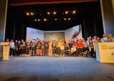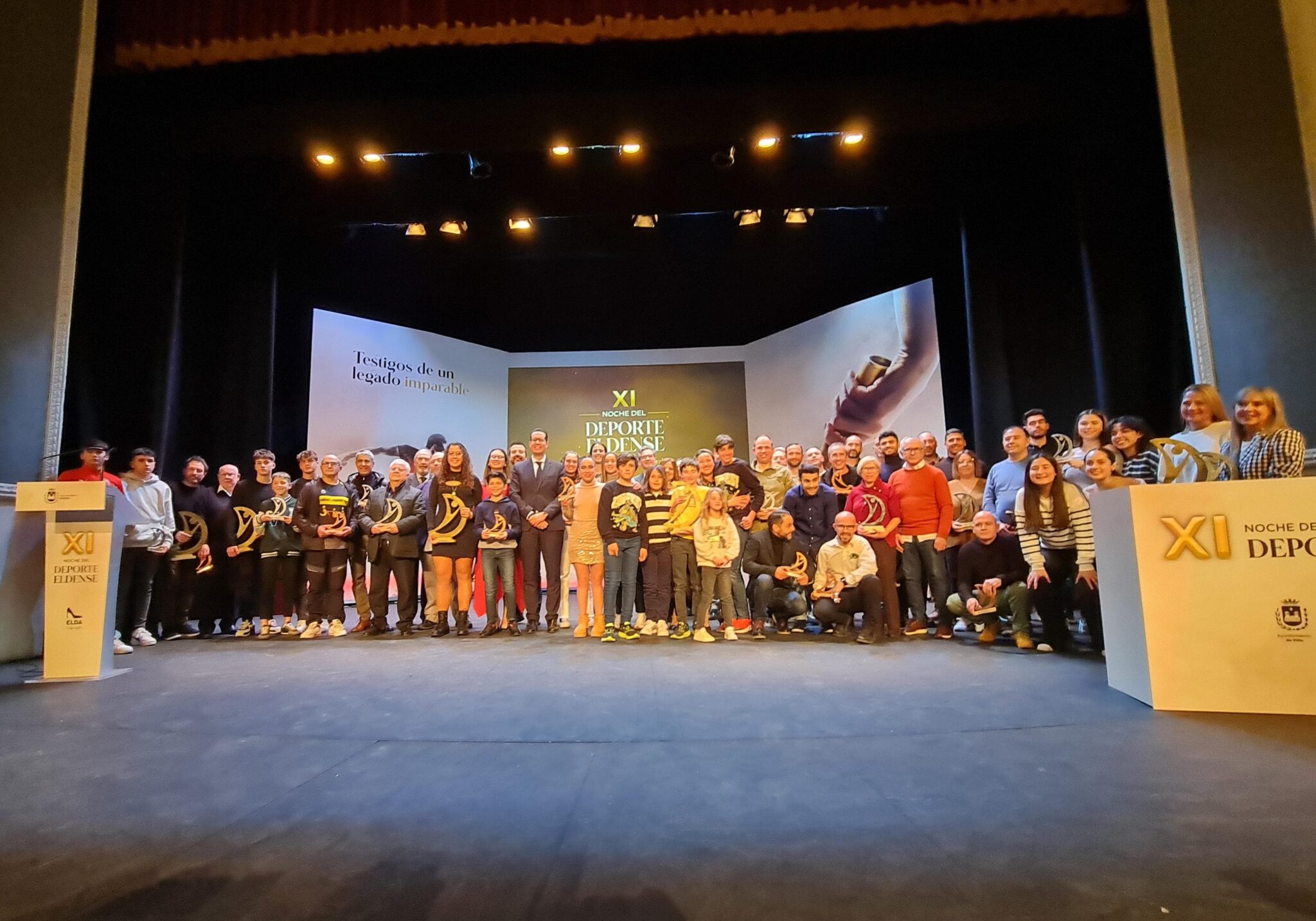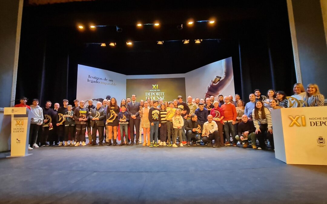 El Teatro Castelar ha sido, un año más, escenario de la XI Noche del Deporte Eldense, una gala con la que la ciudad premia los éxitos y logros de sus deportistas y de sus clubes deportivos conquistados a lo largo del año 2023. La gala, bajo el título ‘Testigos de un legado imparable’, ha tenido como eje central la importancia que la familia y el deporte tienen en la transmisión de valores de generación en generación.