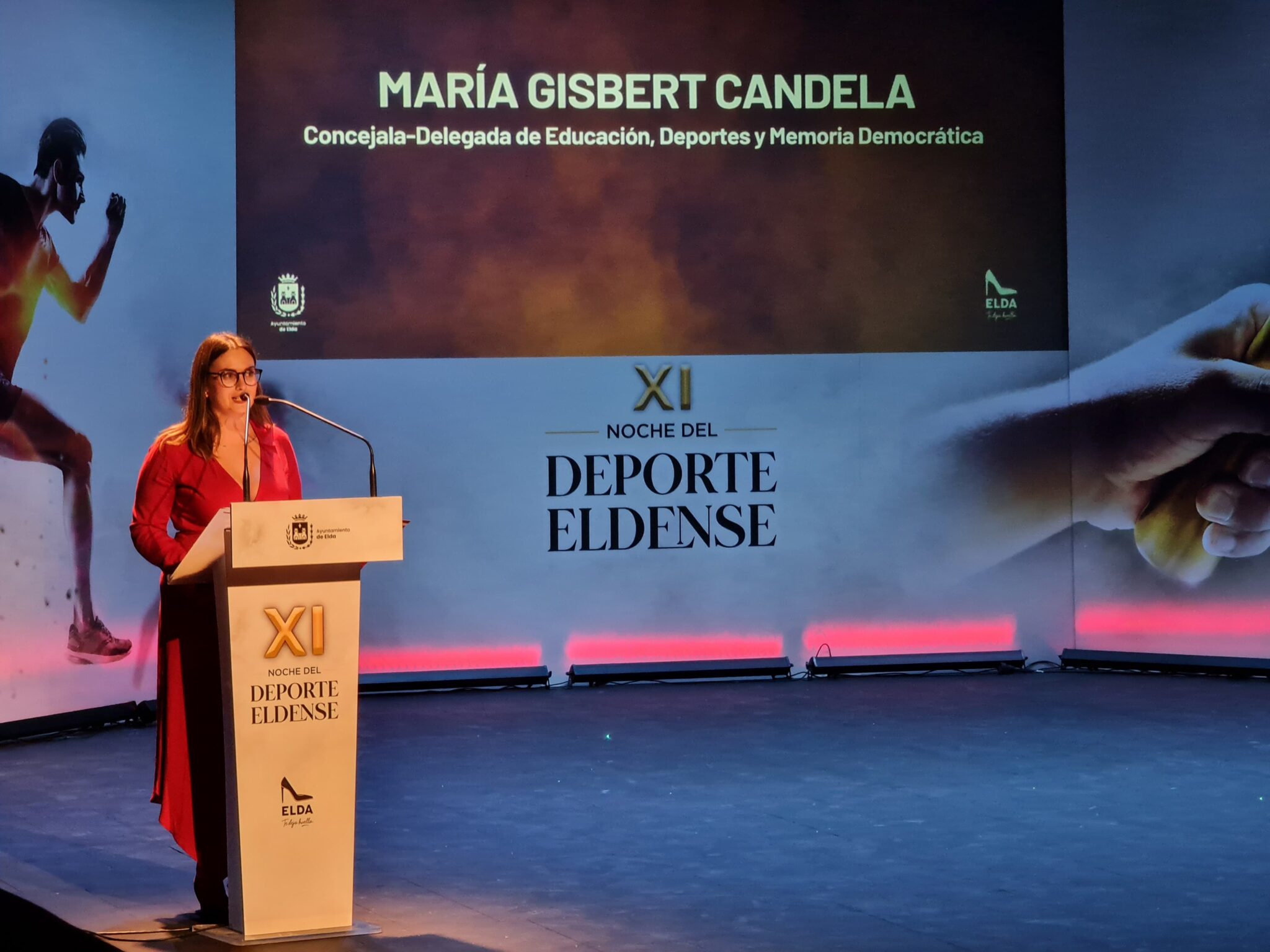 La concejala de Deportes ha destacado “la gran capacidad que tenemos los eldenses para pasar el testigo, el relevo de generación en generación, y de campeones a futuros ganadores. Yo hoy también cojo un testigo, ya que esta gala es testigo desde hace ya once ediciones de la gran importancia que tiene el deporte en nuestra ciudad. Somos conscientes de la gran preparación que hay detrás de cada deportista eldense, entidad y club, el trabajo del día a día de todas las personas que hay detrás de estos triunfos”.