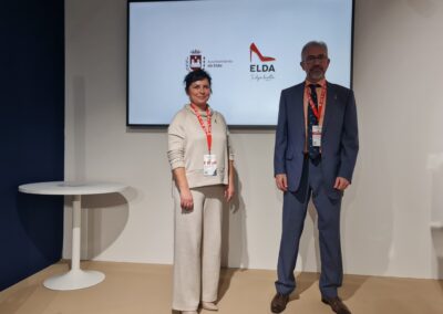Elda ha presentado esta mañana en Fitur su apuesta por la recuperación del Castillo-Palacio como uno de los baluartes de su oferta turística. La concejala de Turismo, Rosa Vidal, y el director del área de Gerencia, Aniceto Pérez, han sido los encargados de dar a conocer tanto el proyecto de rehabilitación de la fortaleza como las actividades que ya se llevan a cabo en el histórico recinto.