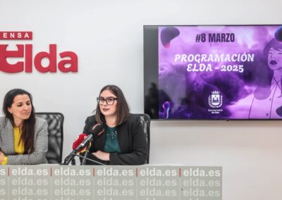 El Ayuntamiento de Elda, a través de diferentes departamentos, ha preparado un amplio programa de actividades con motivo de la celebración, el próximo 8 de marzo, del Día Internacional de la Mujer. Las concejalas de Igualdad, María Gisbert, y de Relaciones con la Universidad, Elizabeth Belda, han dado a conocer una programación que arrancará el 4 de marzo y se prolongará hasta el día 31.