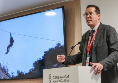 El Ayuntamiento de Elda acude a Fitur junto al Patronato de Turismo Costa Blanca, cuyo stand se ubica en el Pabellón 7, donde hoy, dentro del bloque temático ‘Costa Blanca Sports’, se han presentado las novedades de las Vías Ferratas de Bolón.