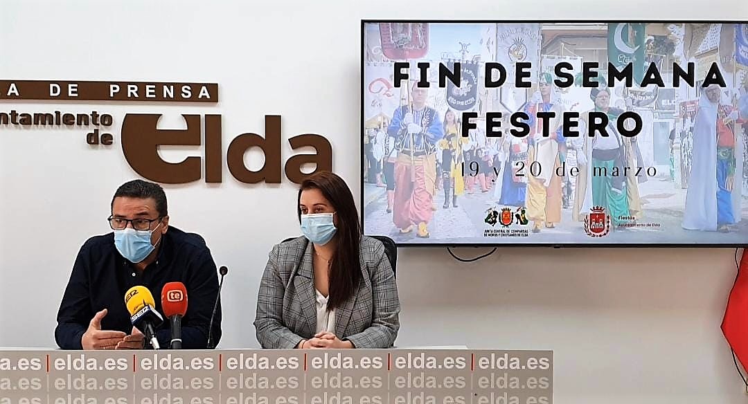 Elda retoma poco a poco el pulso de sus fiestas tras la pandemia y los días 19 y 20 de marzo celebrará un Fin de Semana Festero de Moros y Cristianos. La concejala de Fiestas, Lorena Pedrero, y el presidente de la Junta Central de Comparsas de Moros y Cristianos, Pedro García, han presentado hoy los actos que compondrán una celebración con la que, en palabras de la edil, “los festeros y festeras de Elda recuperan las calles”.