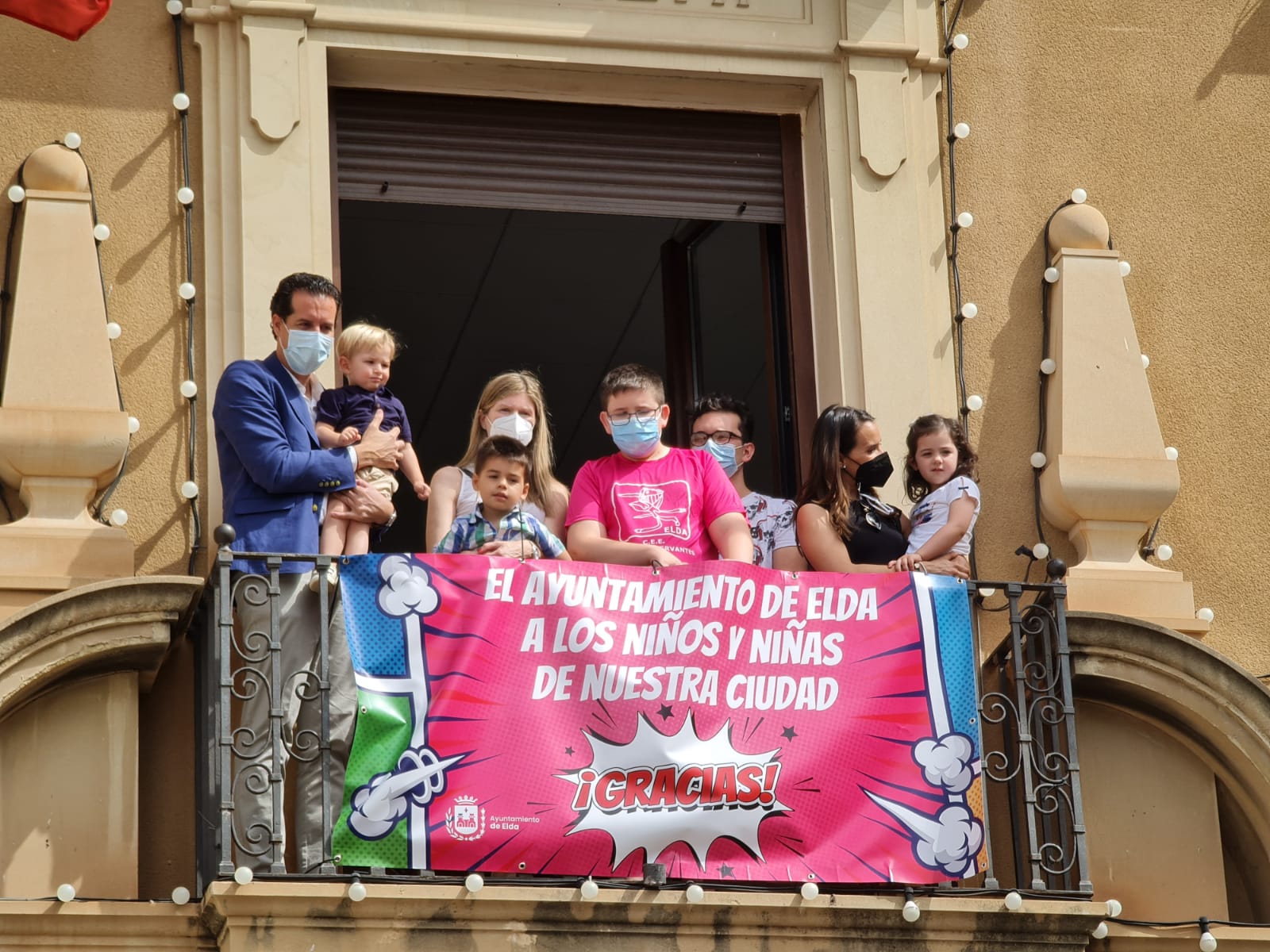 El Ayuntamiento de Elda ha rendido homenaje hoy a los niños y niñas eldenses por su excepcional y ejemplar comportamiento durante los meses de pandemia. El alcalde de Elda, Rubén Alfaro, se ha dirigido a los y las escolares que en representación de todos los centros educativos de la ciudad se han dado cita en la Plaza del Ayuntamiento. El regidor, acompañado por el concejal de Educación, Fernando Gómez, ha afirmado que “es un día especial porque queremos agradeceros el compromiso que habéis realizado durante este curso”.