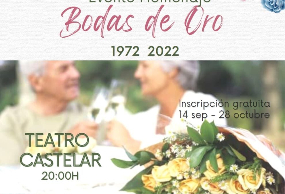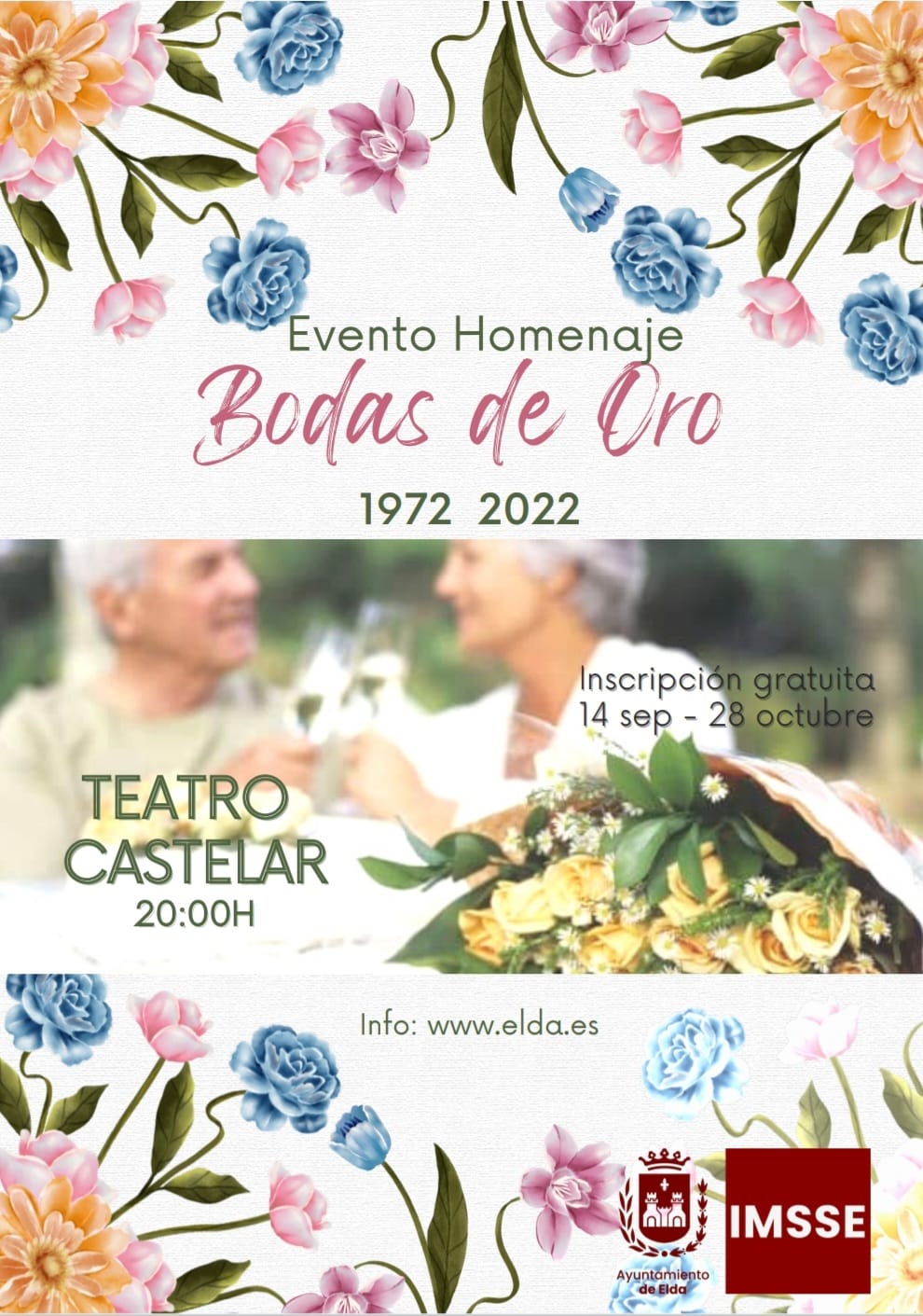 El Ayuntamiento de Elda organiza una nueva edición de las ‘Bodas de Oro’ mañana viernes, 11 de noviembre, a las 20:00 horas en el Teatro Castelar con el objetivo de rendir homenaje a los matrimonios eldenses que celebran 50 años de casados.
