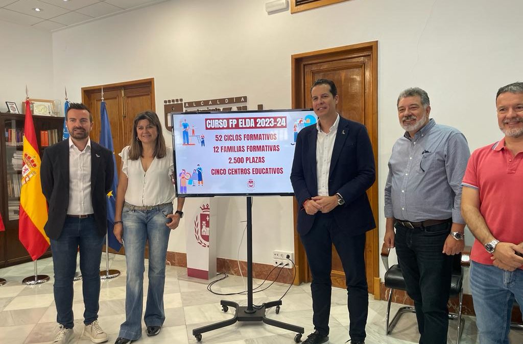 Rubén Alfaro ha explicado que «en esta ocasión, y de cara al curso 2023-24, los dos nuevos ciclos que se incorporan a la oferta de FP de nuestra ciudad son el Curso de Especialización de Implementación de Redes 5G, que se impartirá en el IES La Torreta, y el Grado Superior en Formación para la Movilidad Segura y Sostenible, que ha sido concedido al CIPFP Valle de Elda».