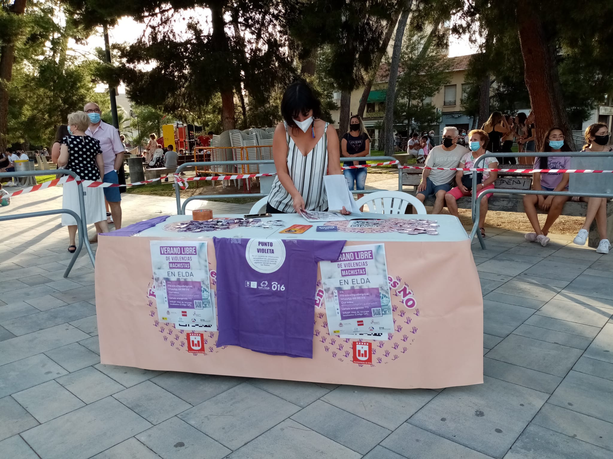 De esta manera, dentro de la programación estival de ocio “Elda 40GRA2” se ha llevado a cabo la instalación de un “Punto violeta” atendido por las profesionales de la Unidad de Igualdad, ubicado dentro del recinto acotado para la celebración de las actividades en la Plaza Castelar. Este punto violeta ha servido como lugar de atención, información y ayuda frente a cualquier tipo de agresiones machistas, además de sensibilizar y visibilizar ante la sociedad las agresiones sexistas en las fiestas.
