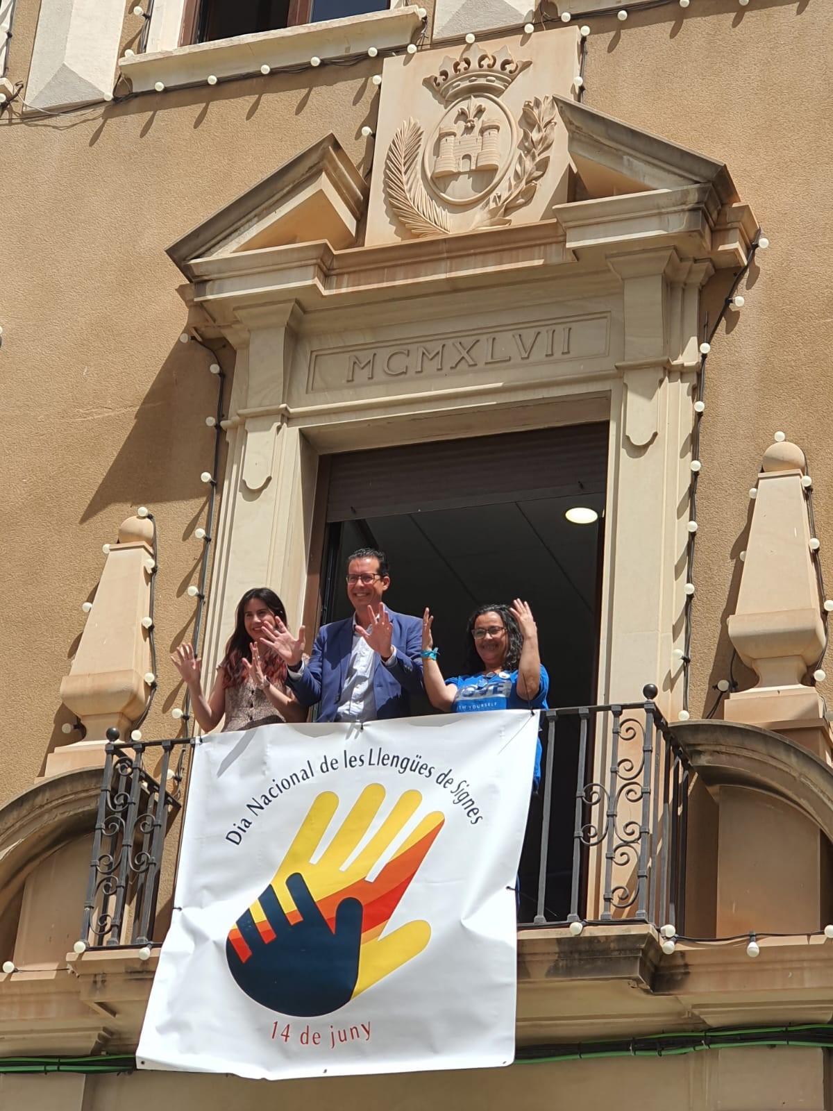 Elda se ha sumado esta mañana a los actos de celebración del Día Nacional de la Lengua de Signos con la colocación de una pancarta en uno de los balcones de la Casa Consistorial y con la lectura de un manifiesto, actos en los que han estado presente miembros de la Corporación Municipal con su alcalde, Rubén Alfaro, al frente.