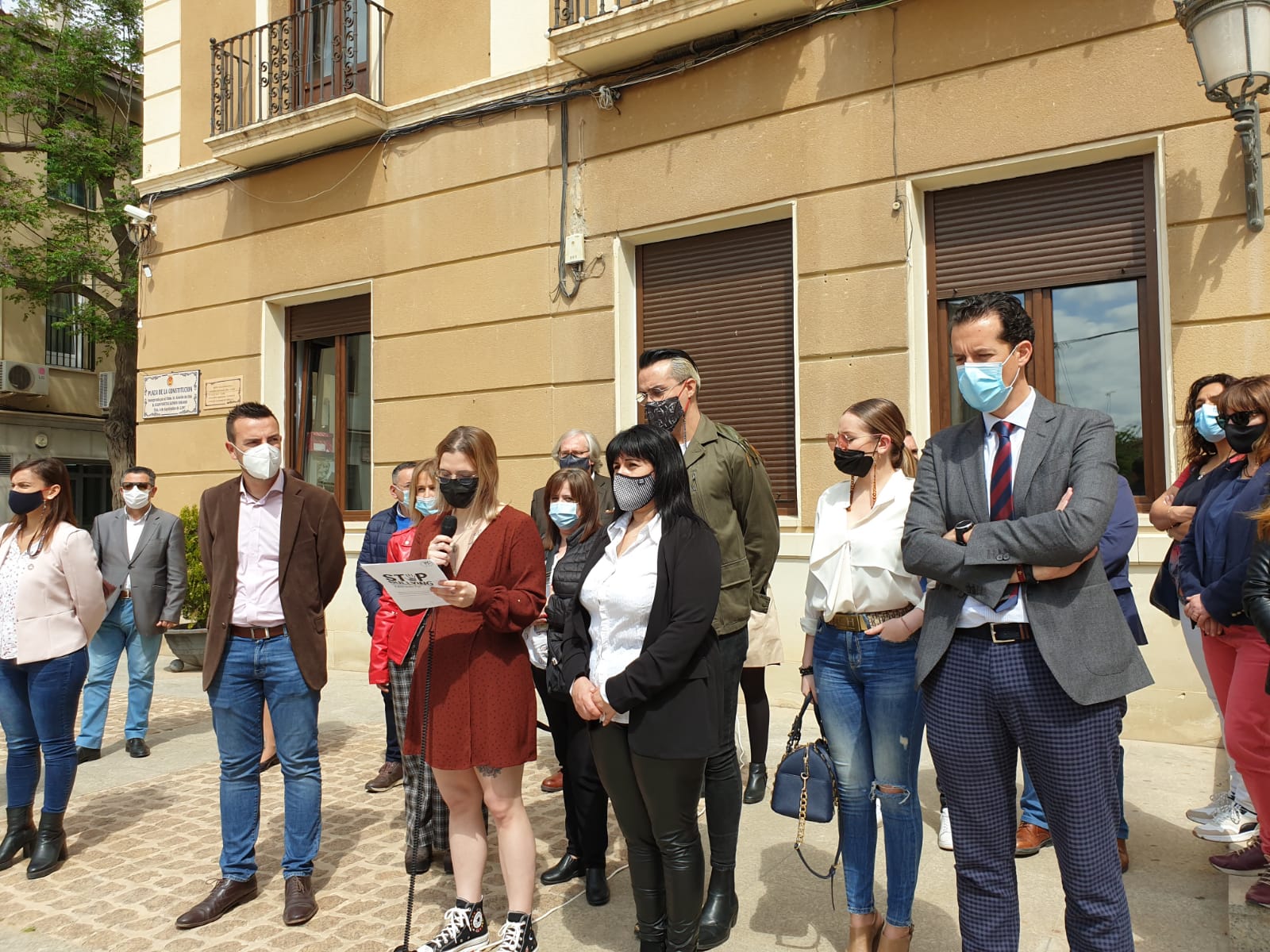 El Ayuntamiento de Elda se ha sumado hoy a los actos del Día Internacional contra el Acoso Escolar, que se celebra el próximo domingo, 2 de mayo, con la colocación de una pancarta en el balcón consistorial y la lectura de un manifiesto a las puertas del Ayuntamiento, donde se han concentrado miembros de la Corporación Municipal y representantes de la comunicad educativa, como Belén Maestre, en representación de la Agrupación Local de AMPAS.