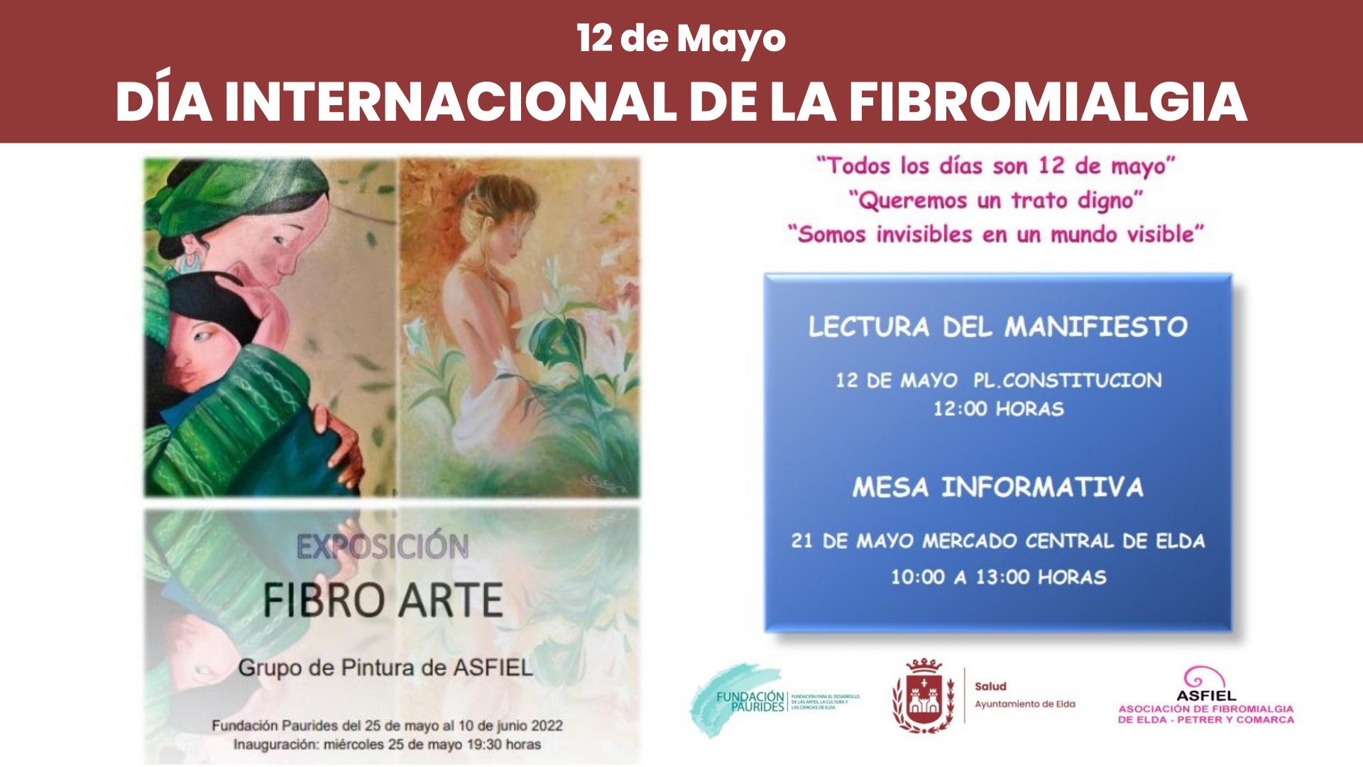 Este año Asfiel ha fijado como lema ‘Todos los días son 12 de Mayo’ porque “la enfermedad está con nosotros todos los días. Empezaremos el jueves 12 de mayo con la lectura del Manifiesto en la Plaza de la Constitución, a las puertas del Ayuntamiento de Elda a las 12.00 horas, un acto al que invitamos a todo el mundo. Seguiremos con mesas informativas y las colocaremos el 13 de mayo en el Mercado de Petrer y el 21 de mayo en el Mercado Central de Elda de 10.00 a 13.00 horas”.