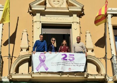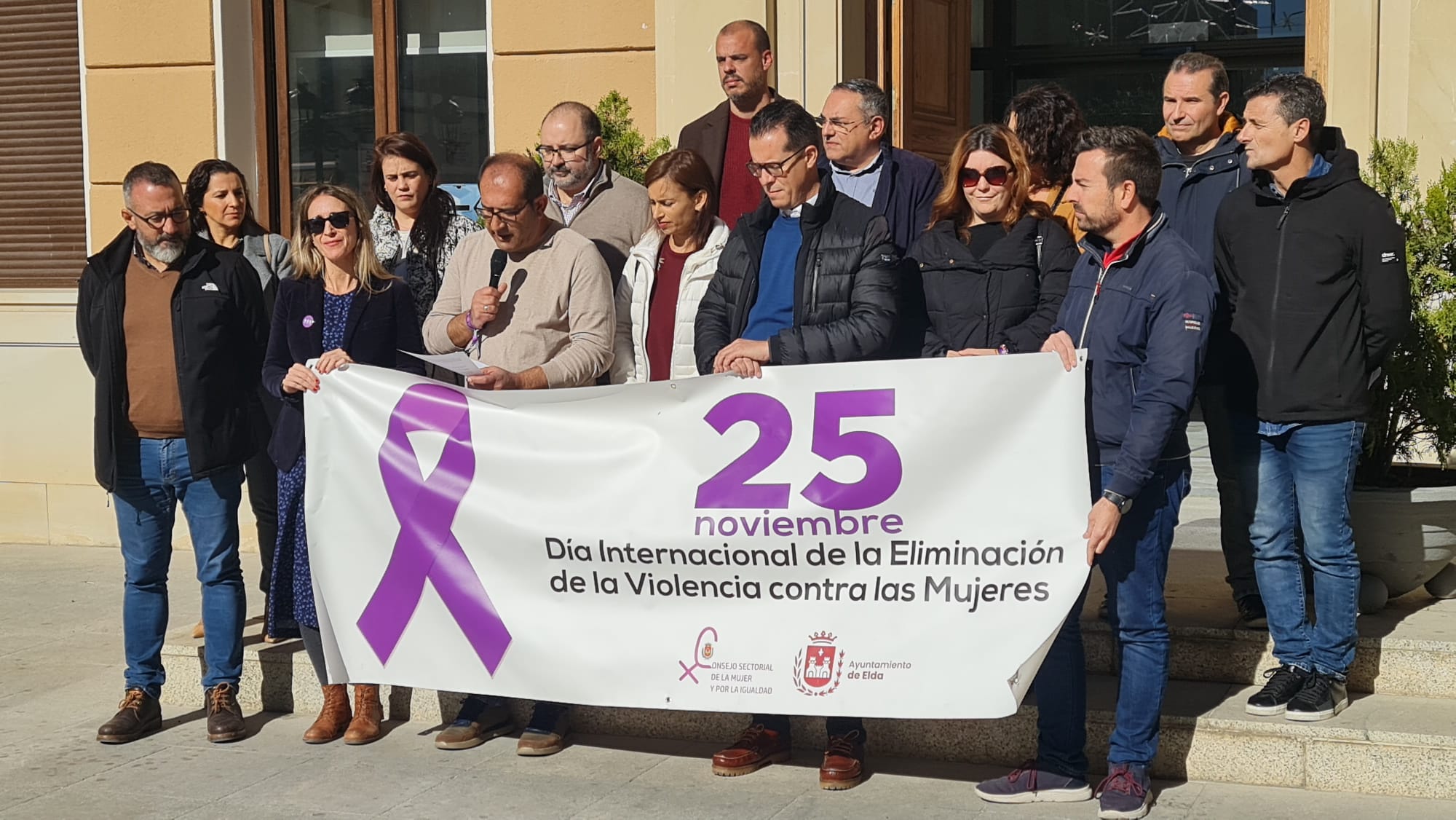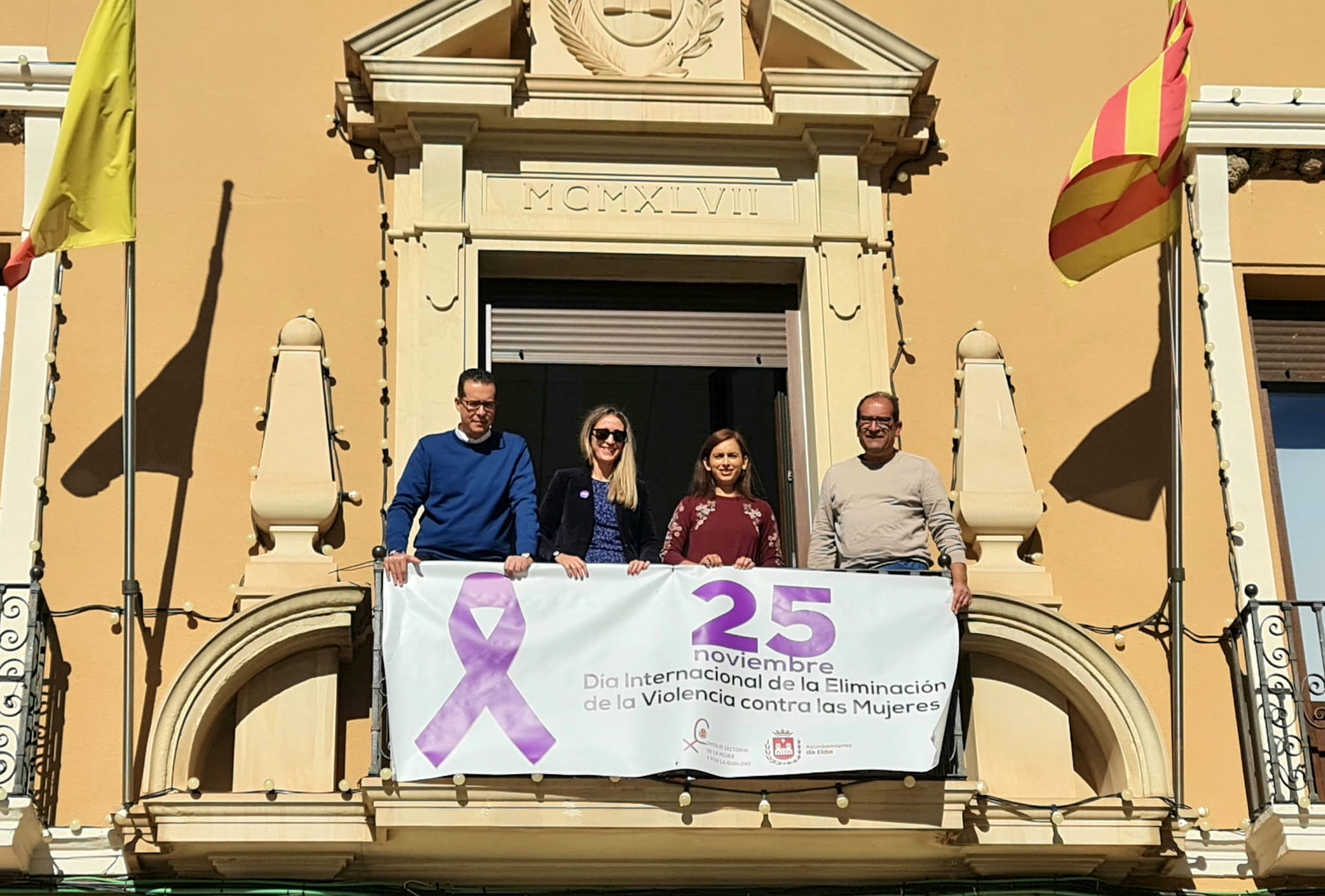 Elda se ha sumado hoy a los actos de conmemoración del 25-N, Día Internacional por la Eliminación de la Violencia contra la Mujer, con la colocación de una pancarta en el balcón