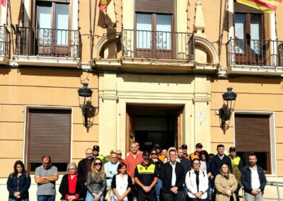 En la concentración han participado miembros de la Corporación Municipal, con el alcalde Rubén Alfaro a la cabeza, además de miembros de la Policía Local de Elda y de Protección Civil y vecinos y vecinas
