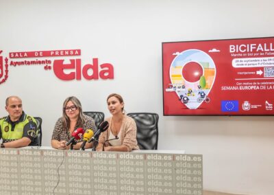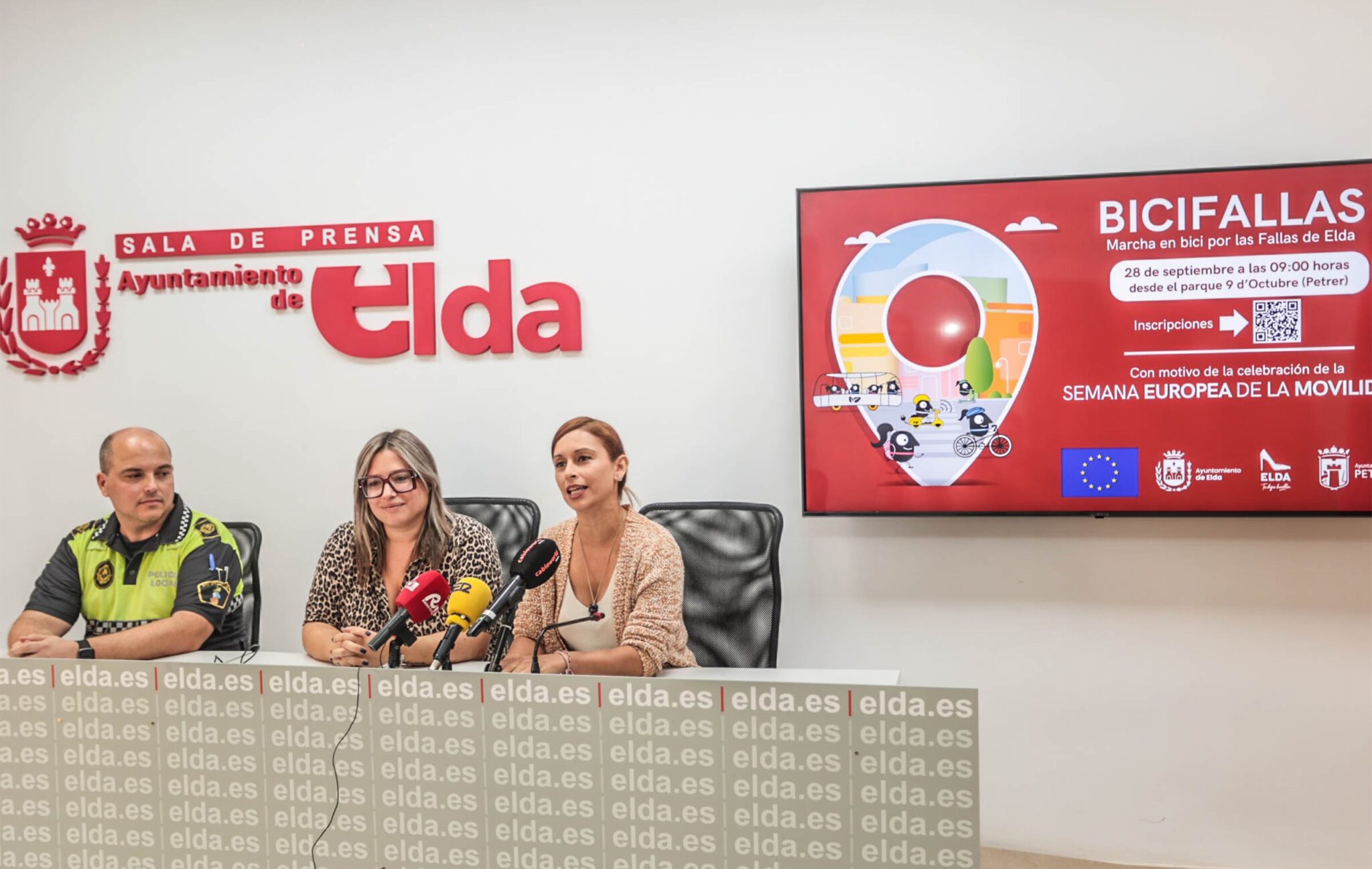 El domingo 28 de septiembre se celebrará una nueva edición de BiciFallas, una de las actividades más consolidadas dentro de la Semana de la Movilidad en Elda y Petrer. Esta mañana se ha llevado a cabo la presentación oficial, en la que han participado la concejala de Seguridad Ciudadana y Control de la Movilidad del Ayuntamiento de Elda, Silvia Ibáñez; la concejala de Medio Ambiente del Ayuntamiento de Petrer, Remei Iborra; y el agente de la Policía Local de Elda, Cayetano Gómez, responsable de la Unidad de Educación y Seguridad Vial.