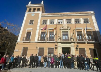 Miembros de la Corporación Municipal, mandos de la Policía Local, Policía Nacional y Benemérita, así como ciudadanos y ciudadanas han participado en la concentración a las puertas del Ayuntamiento