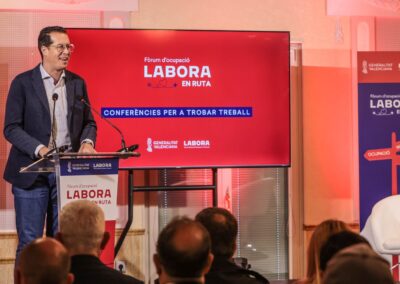 Los Salones Princesa de Elda han acogido esta mañana el Foro de Empleo ‘Labora en Ruta’, una jornada organizada por el Servicio Valenciano de Empleo y Formación y el Ayuntamiento de Elda, a través de IDELSA y en colaboración con el Pacto Territorial por el Empleo del Valle del Vinalopó. El encuentro ha sido un éxito total, ya que han asistido más de un millar de personas que optaban a la oferta laboral de 29 empresas de Elda y de la comarca.