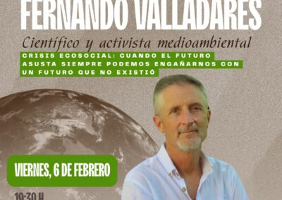La concejala de Medio Ambiente Natural, Cristina Rodríguez Armigen, ha subrayado la importancia de contar con una figura de este nivel en las Jornadas Medioambientales de Elda: “La presencia de Fernando Valladares supone una oportunidad extraordinaria para reflexionar, desde el rigor científico, sobre los desafíos ambientales a los que nos enfrentamos como sociedad. Su capacidad para trasladar conocimientos complejos de forma clara y comprometida lo convierte en un ponente imprescindible”.