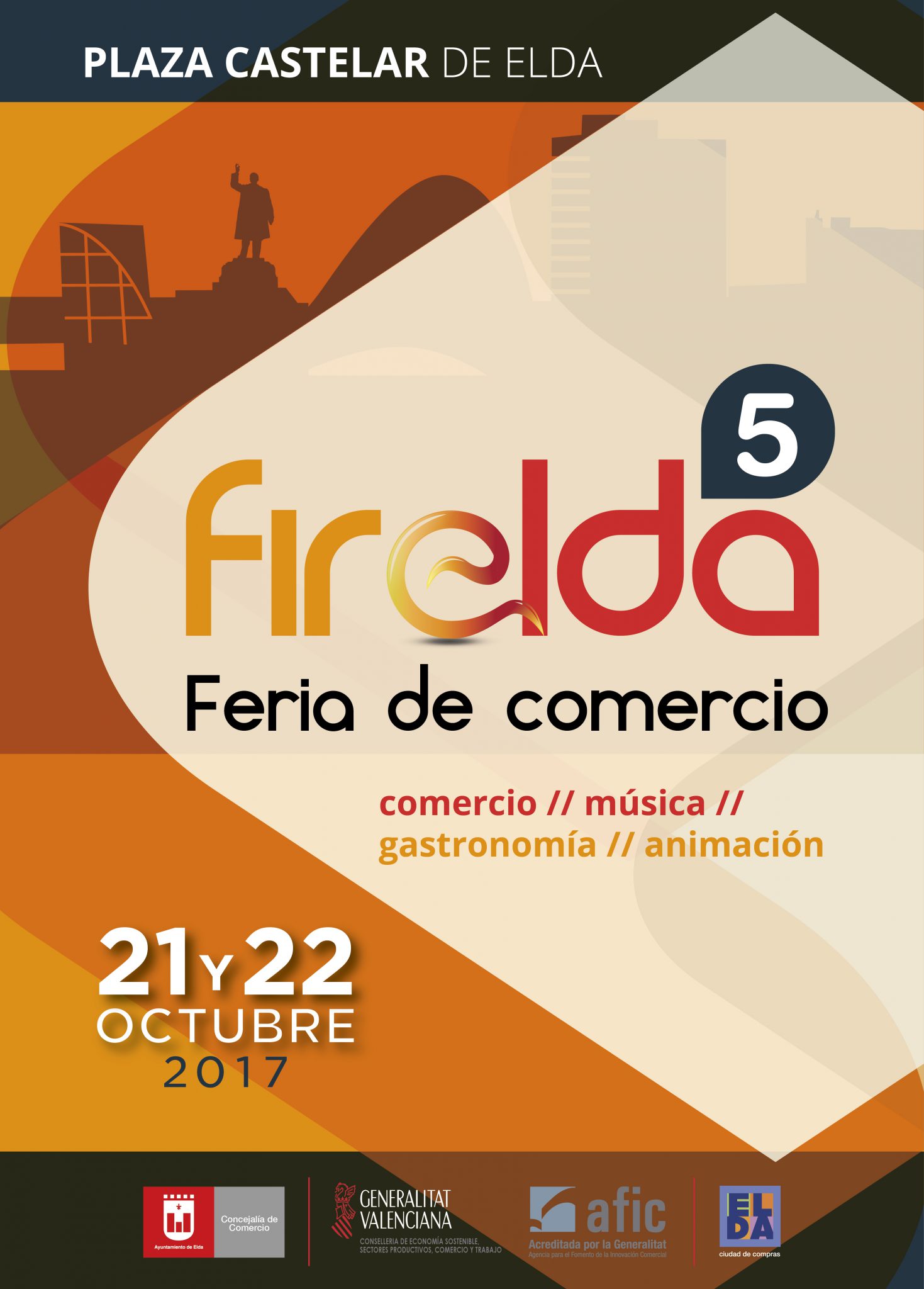 Desde la Concejalía de Comercio del Ayuntamiento de Elda, a través de la AFIC (Agencia municipal para el Fomento de la Innovación Comercial) se está trabajando con el colectivo de Asociaciones de Comerciantes de Elda, para desarrollar la 5ª Edición de la FIRELDA, la Feria de Comercio en Elda.