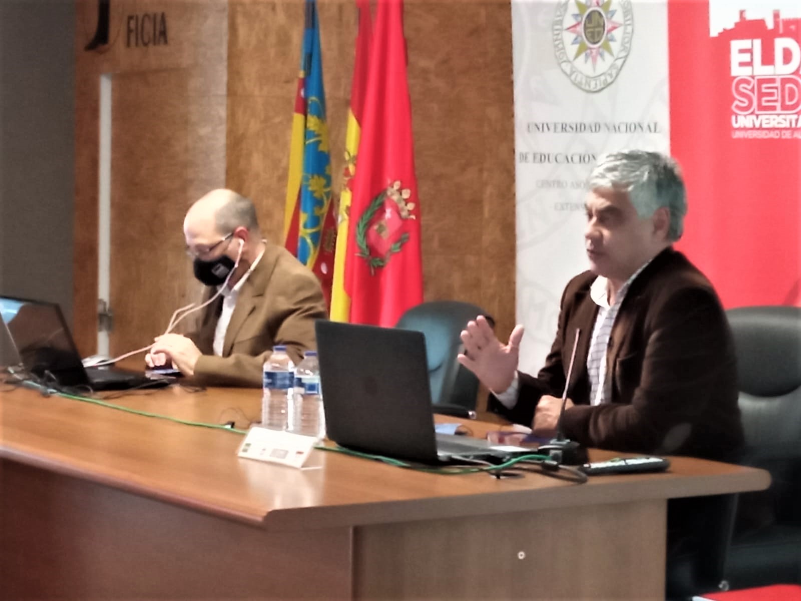 En el acto intervinieron Amado Navalón, concejal de Relaciones con las Universidades; Iñaki Pérez, director general de Calidad Democrática, Responsabilidad Social y Fomento del Autogobierno, además de Charo Navalón, directora de la Sede Universitaria de Elda de la UA, y José Manuel Guardia, coordinador del Aula de la UNED.