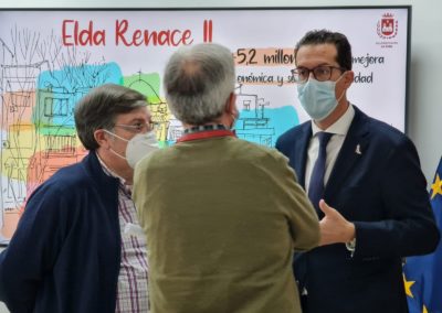 En relación a los proyectos que se abordarán con el Plan Elda Renace II, Rubén Alfaro ha afirmado que “con respecto a los proyectos que serán incluidos en el Plan Elda Renace II, en estos momentos pueden anticiparles que se va a acometer una importante actuación en los centros educativos de nuestra ciudad. Como todos ustedes saben, en estos momentos se están ejecutando las obras del Plan Edificant que permitirán adecuar las instalaciones de los 20 centros educativos de nuestra ciudad. Para complementar esta actuación, desde el Ayuntamiento vamos a llevar a cabo la rehabilitación de los patios y recintos exteriores de aquellos centros que lo requieran”.