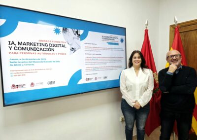 Por su parte, Carlos Ortuño ha explicado que «estas jornadas nacen de la idea de que hay herramientas para que autónomos y pymes difundan su marca y sus productos simplificando los procesos, pero no siempre se conocen. Ese es el sentido de estas jornadas que se basan en tres patas: el marketing digital, la comunicación y la IA».