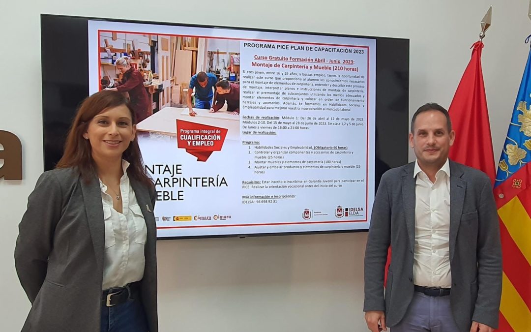 Silvia Ibáñez, concejala de Fomento Económico, Industria y Empleo, acompañada del director de la Cámara de Comercio de Alicante, Rafael Fernández, ha presentado esta mañana el primer programa PICE de 2023 puesto en marcha por el Ayuntamiento de Elda a través de IDELSA. La edil ha afirmado que “en primer lugar me gustaría destacar que llevamos años trabajando con la Cámara de Comercio y, gracias a esta colaboración, hemos podido formar dentro de los Planes PICE a más de 150 jóvenes menores de 30 años inscritos en garantía juvenil”.