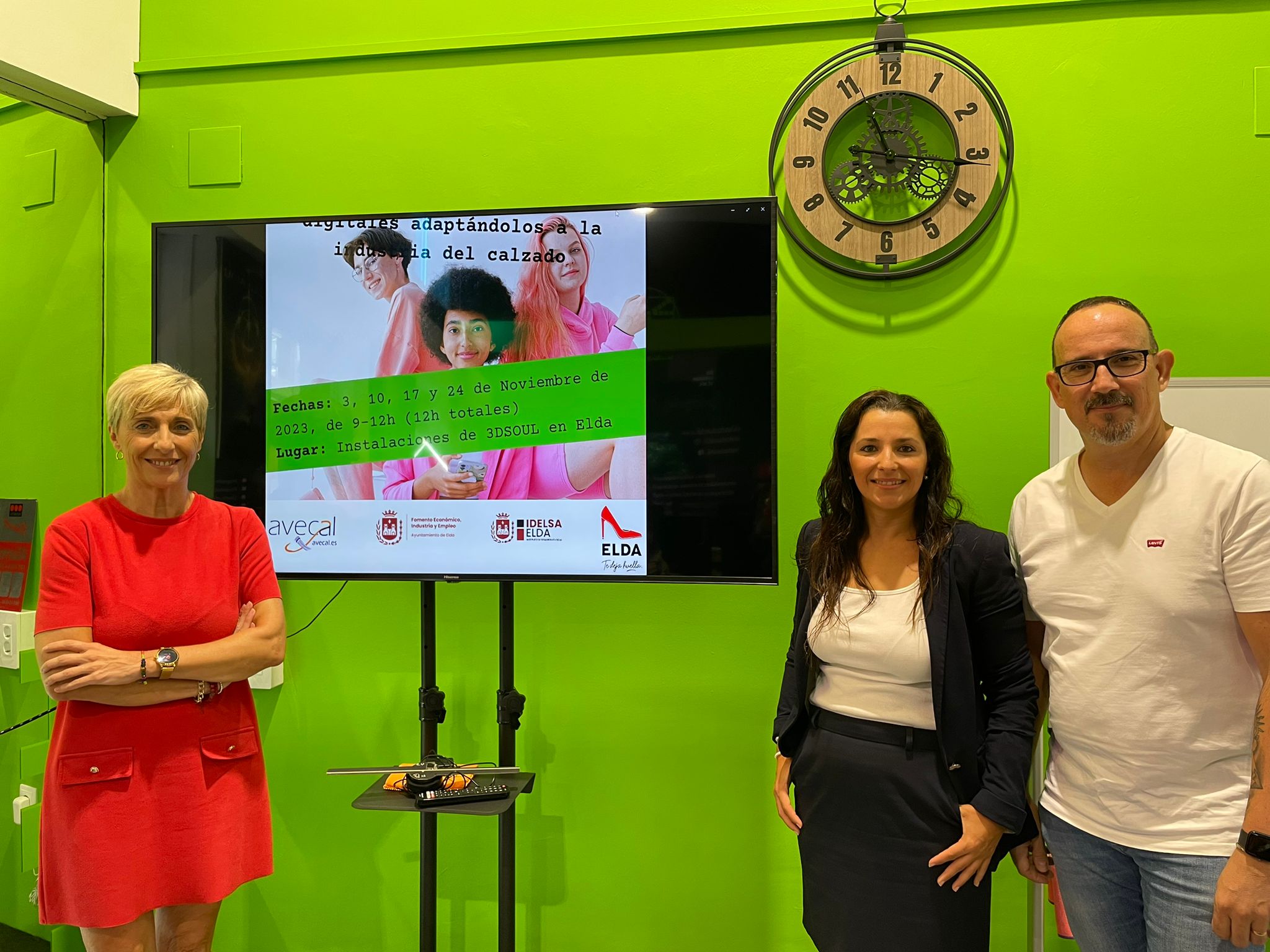 La concejala de Fomento Económico, Industria y Empleo, Elizabeth Belda, ha presentado esta mañana un nuevo curso formativo que bajo el título ‘Curso para CEOs del sector del calzado’ ofrecen Idelsa y AVECAL. La formación corre a cargo de 3D Soul School, centro de formación eldense especializado en Artes Digitales y Diseño 3D.