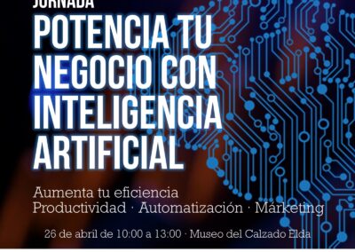 La edil ha indicado que «se trata de una jornada muy novedosa e interesante que tendrá lugar el viernes 26 de abril, de 10.00 a 13.00 horas, en el Museo del Calzado. Está dirigida a todas aquellas personas, emprendedores, empresarios y autónomos, que quieran ampliar conocimientos sobre las posibles aplicaciones de la inteligencia artificial en sus empresas y negocios».
