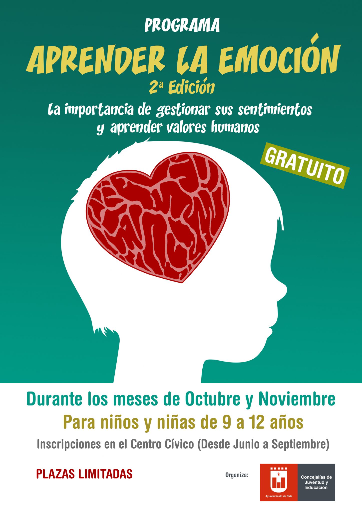 A partir de octubre tendrá lugar un Programa de Educación Emocional titulado “Aprender la Emoción” propuesto a través de la Concejalía de Juventud del Excmo. Ayuntamiento de Elda.