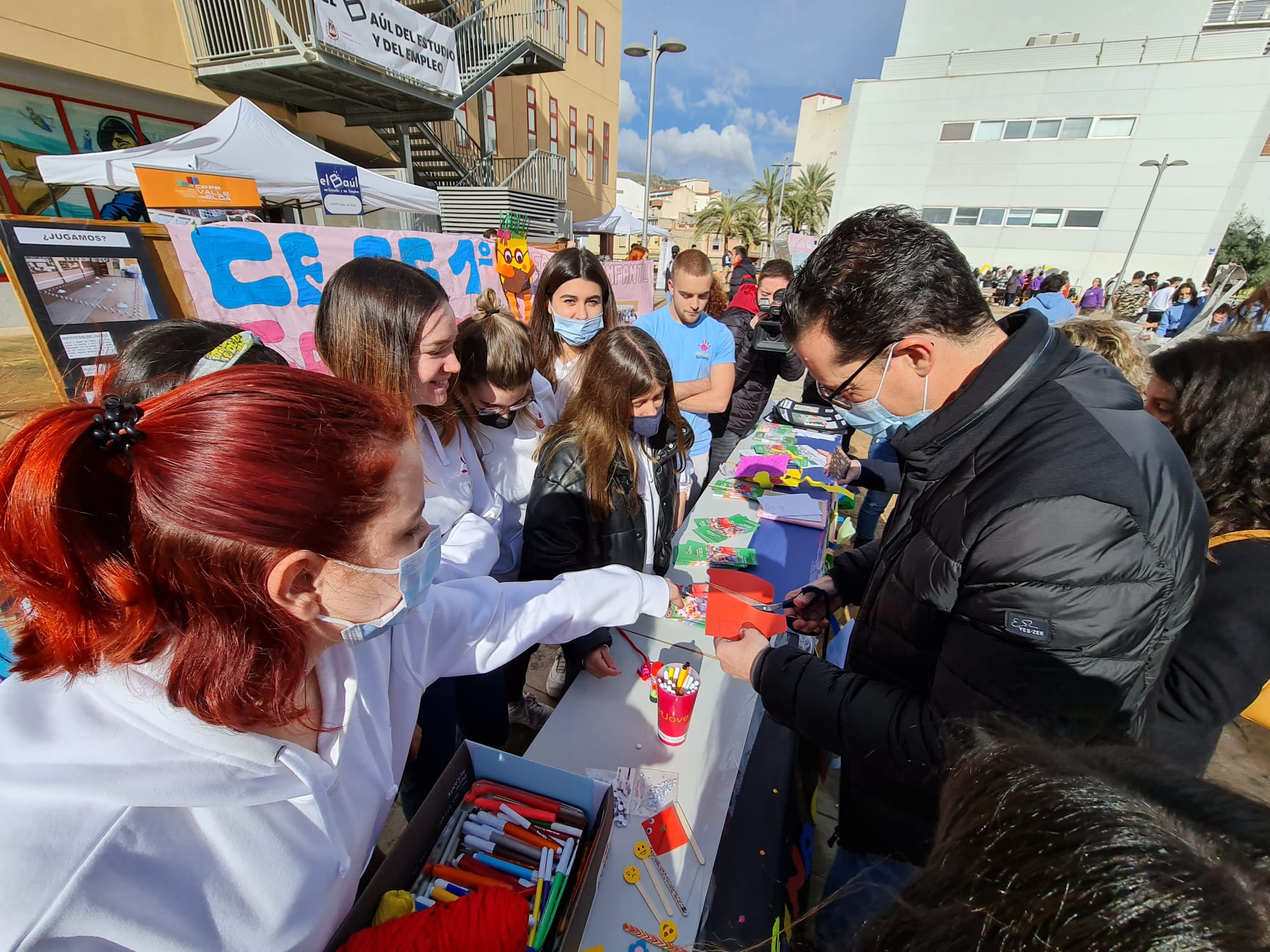 El alcalde Rubén Alfaro ha recorrido todos los stands instalados en la Plaza de la Ficia y en el Centro Cívico y Juvenil y ha puesto en valor un certamen que tiene como objetivo informar a la juventud eldense de toda la oferta formativa y laboral que tiene a su disposición