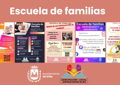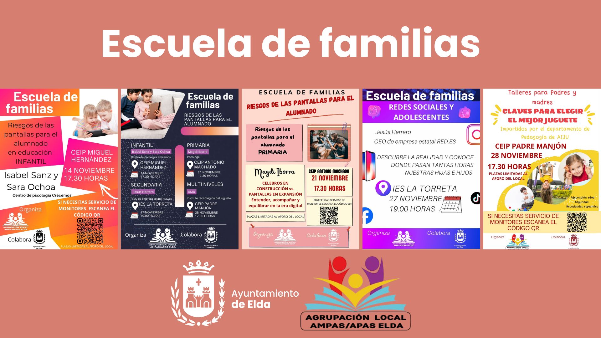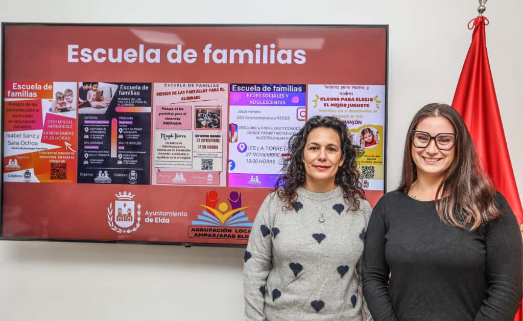 La Agrupación Local de Ampas de Elda organiza una nueva edición de la Escuela de Familias, una iniciativa que cumple su sexto año y que, en palabras de la concejala de Educación, María Gisbert, «es muy importante para la formación de las familias porque se abordan temas de muchas actualidad como el uso de las pantallas o la elección de juguetes que no sean sexistas».