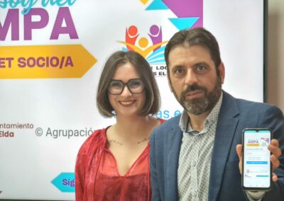La concejala de Educación, María Gisbert, y el presidente de la Agrupación Local de Ampas de Elda, Carlos Vicente, han presentado el carné de socio que por cuarto curso consecutivo pone en marcha la Agrupación. «Se trata de una iniciativa que se enmarca en el convenio que el Ayuntamiento de Elda mantiene con la Agrupación Local de Ampas de Elda. Quiero agradecer la labor que realiza y las iniciativas que tiene la Agrupación, así como el papel que todas las ampas de nuestra ciudad tienen en la comunidad educativa y por los niños y niñas de Elda».