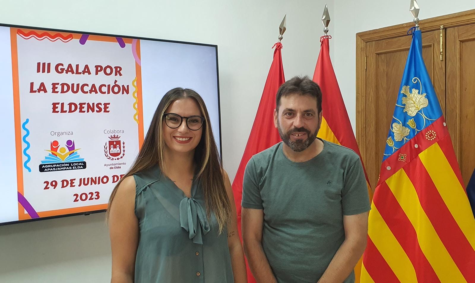 El próximo jueves, a partir de las 19.30 horas, se celebrará en la Finca Lacy la III Gala por la Educación Eldense, un evento organizado por la Agrupación Local de Ampas de Elda que ha sido presentado esta mañana por la concejala de Educación, María Gisbert, y el presidente de la Agrupación, Carlos Vicente.
