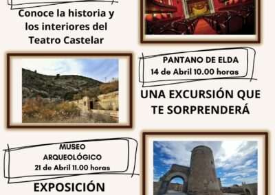La actividad comenzará el próximo domingo con un recorrido por los entresijos del Teatro Castelar, continuará el día 14 con una excursión al Pantano de Elda y concluirá el día 21 en el Museo Arqueológico con una visita a la exposición sobre el Castillo