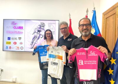 La concejala de Deportes, María Gisbert, acompañada del edil de Igualdad y Mujer, David Guardiola, y del presidente del Club Ciclista Inter Race, José Luis Sabater, ha explicado que «Elda comparte fin de semana con Elche con el objetivo de facilitar que la cercanía de ambas ciudades anime a equipos de toda España a desplazarse para competir en dos pruebas en un mismo fin de semana».
