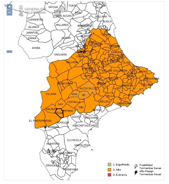 El Ayuntamiento de Elda, a través de las concejalías de Seguridad Ciudadana y de Fiestas, ha determinado que la Bajada de Antorchas de Bolón de esta tarde se realice exclusivamente con los dispositivos de tecnología LED debido a la previsión meteorológica de fuertes rachas de viento en el momento de iniciarse el descenso. El servicio 112 de la Generalitat Valenciana ha activado la alerta naranja por riesgo de incendios forestales, lo que automáticamente impide la utilización de las antorchas de fuego.