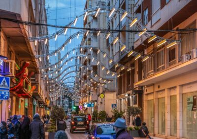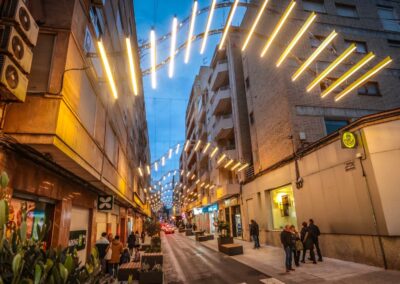 El novedoso sistema de luces LED instalado, compuesto por 15 arcos ondulados fabricados para iluminar la totalidad de esta vía, dotará a la calle Dahellos de un carácter propio. Sus múltiples luminarias permiten ofrecer una iluminación homogénea con un bajo consumo, y su control inteligente permite además controlar la intensidad de la luz y el propio color de las luminarias, pudiendo variar para conmemorar efemérides o días importantes para la ciudad y sus ciudadanos y ciudadanas.