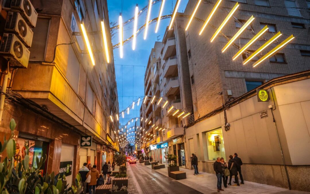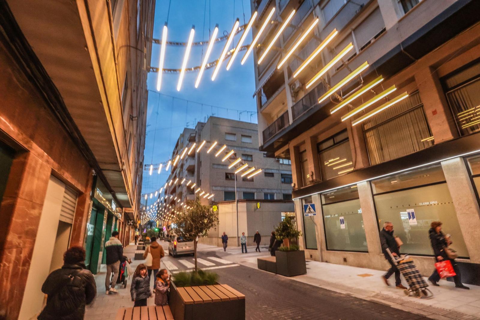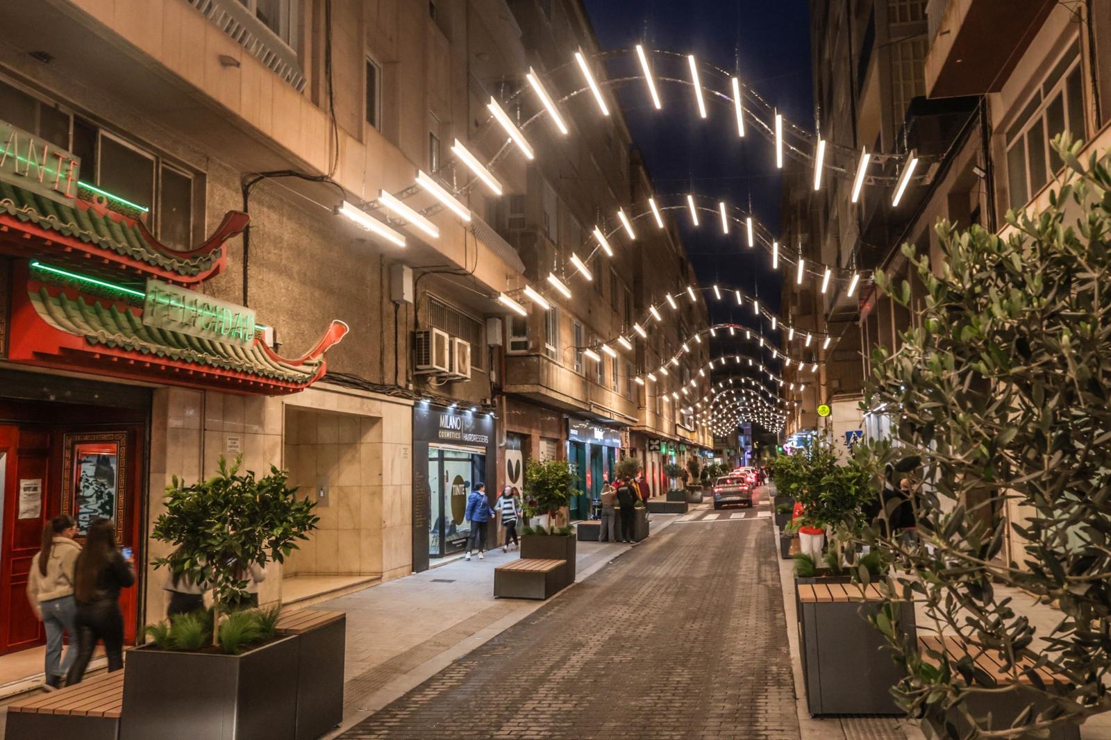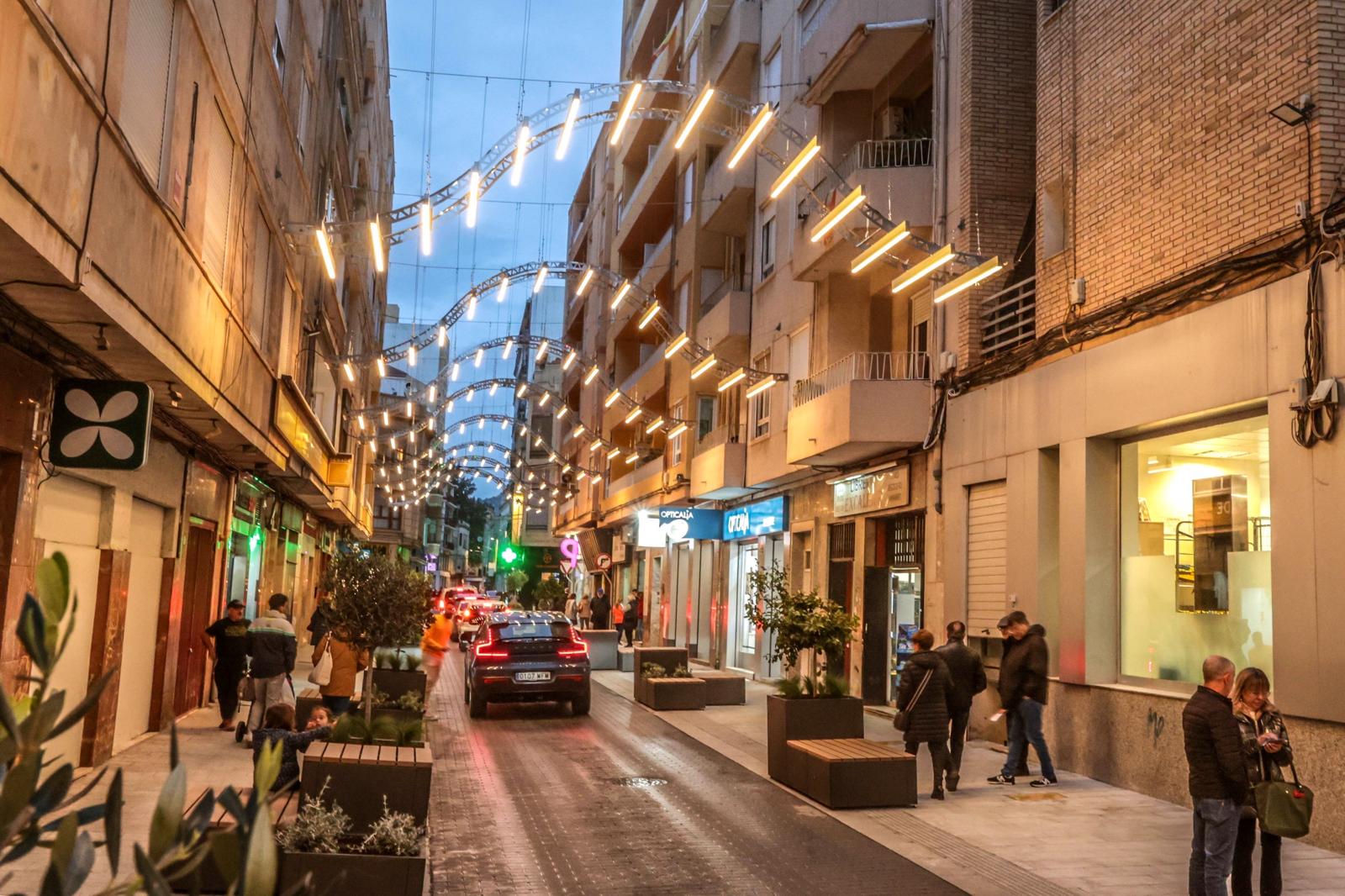 El nuevo vial ha estrenado hoy nuevas zonas de descanso para los peatones, modernos arcos de luz LED y placas instaladas en el pavimento con el nombre de las mujeres que han recibido la prestigiosa distinción con el fin de poner en valor el zapato de Elda