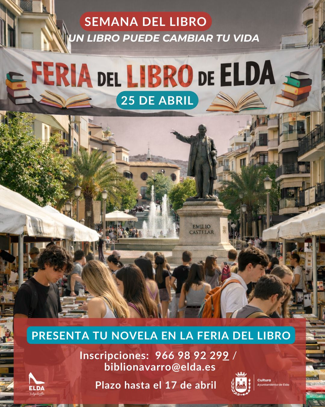 El Ayuntamiento de Elda, a través de la Concejalía de Cultura, ha lanzado una invitación a escritores, escritoras y librerías de la ciudad para que formen parte de la próxima Feria del Libro, que se celebrará el 25 de abril a partir de las 10:00 horas en la calle Antonino Vera. El objetivo es convertir esta jornada en una auténtica fiesta de la literatura, promoviendo la lectura y apoyando a los autores y establecimientos locales.
