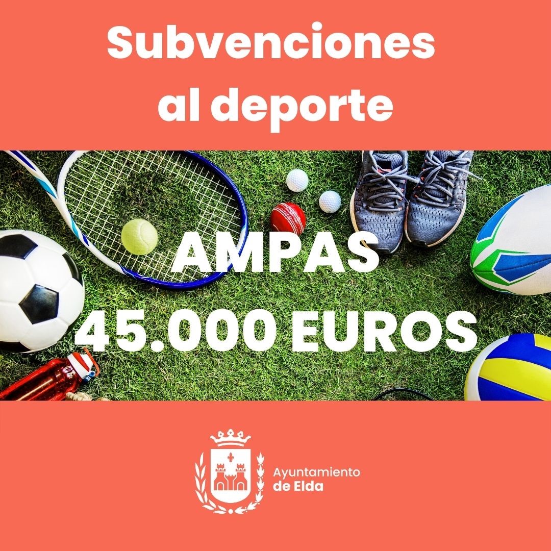 El Ayuntamiento de Elda, a través de la Concejalía de Deportes, ha abierto el plazo para que las AMPAS soliciten las subvenciones deportivas de 2022. Las ayudas a las AMPAS, con un importe total de 45.000 euros, cinco mil euros más que en el anterior ejercicio, y un máximo de 6.000 euros por entidad, se conceden por competir en los Juegos Deportivos de la Comunitat Valenciana y en el caso de los clubes y deportistas de élite son subvenciones por participar en competiciones federadas.