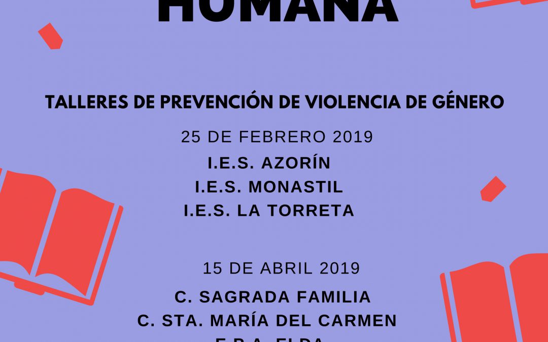 La Concejalía de Igualdad y Mujer, en colaboración con Vicepresidencia y Conselleria de Igualdad y Políticas Inclusivas de la Generalitat Valenciana, ha programado la realización de 9 talleres de prevención de violencia de género que, bajo el nombre de ‘Biblioteca Humana, están dirigidos al alumnado de Bachiller y de Educación Permanente de Adultos de Elda. Este programa se desarrolla para dar cumplimiento al Pacto de Estado Contra la Violencia de Género.