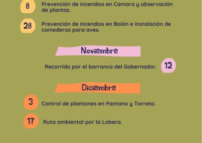 Las actividades más destacadas durante la programación de otoño son la realización de labores de prevención de incendios, la instalaciones de comederos para aves y el control de plantones