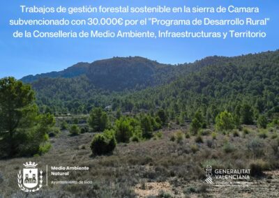 El Ayuntamiento de Alicante, a través de la Concejalía de Medio Ambiente, ha presentado hoy las actuaciones que se están llevando a cabo para la gestión sostenible y mejora de la masa forestal de Camara. Estas iniciativas, enfocadas en la prevención de incendios y la mejora de la salud de los bosques, cuentan con la financiación de 30.000 euros de la Conselleria de Medio Ambiente, Infraestructuras y Territorio, en el marco del Programa de Desarrollo Rural de la Comunitat Valenciana 2014-2020, según la Resolución del 17 de julio de 2024.