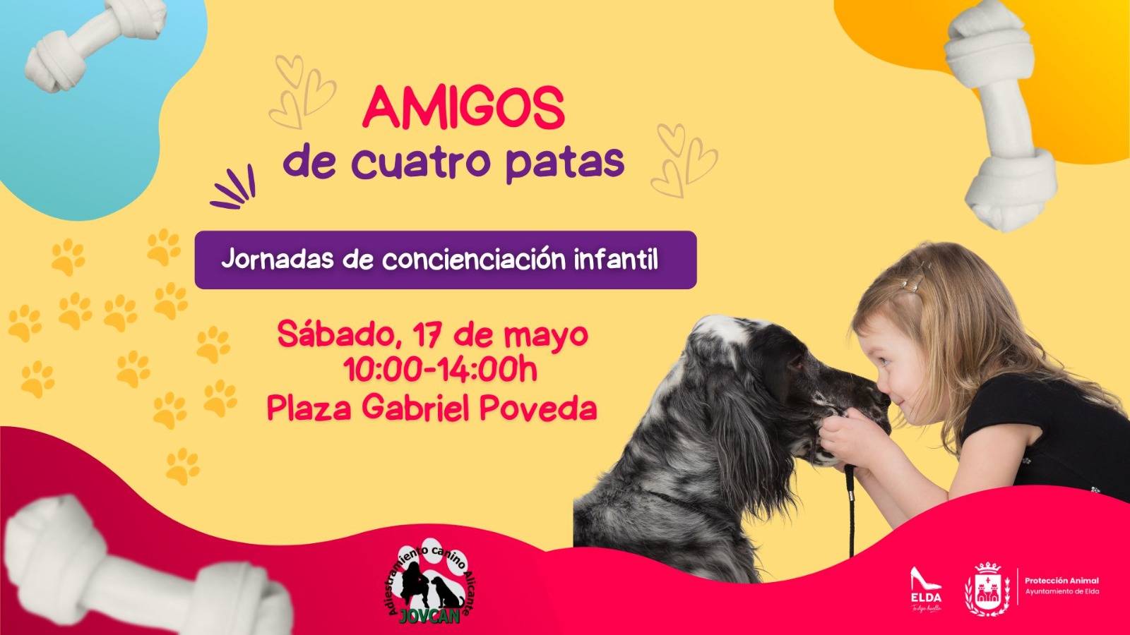 La Concejalía de Protección Animal del Ayuntamiento de Elda presenta las primeras jornadas de concienciación sobre la tenencia y las buenas prácticas caninas, un evento pionero en nuestro municipio que tendrá lugar el próximo sábado 17 de mayo en la Plaza Zeus, de 10:00 a 14:00 horas. Esta iniciativa, dirigida a toda la familia, contará con actividades educativas, talleres y dinámicas pensadas para fomentar el respeto y el bienestar animal desde la infancia. Las jornadas se realizan junto a la empresa JOVCAN.