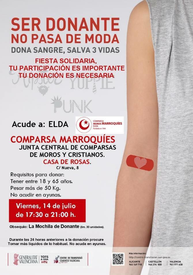 Desde el Centro de Transfusiones de Alicante indican que Elda es una ciudad con un alto número de donaciones pero que, durante los meses de verano, como en otras zonas, las donaciones descienden considerablemente. Por este motivo, la concejala invita a todo el que pueda a acercarse a las diferentes colectas que se van a realizar este mes “sean ya donantes o no, ya que ahora es un buen momento también para donar por primera vez”.
