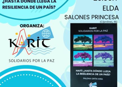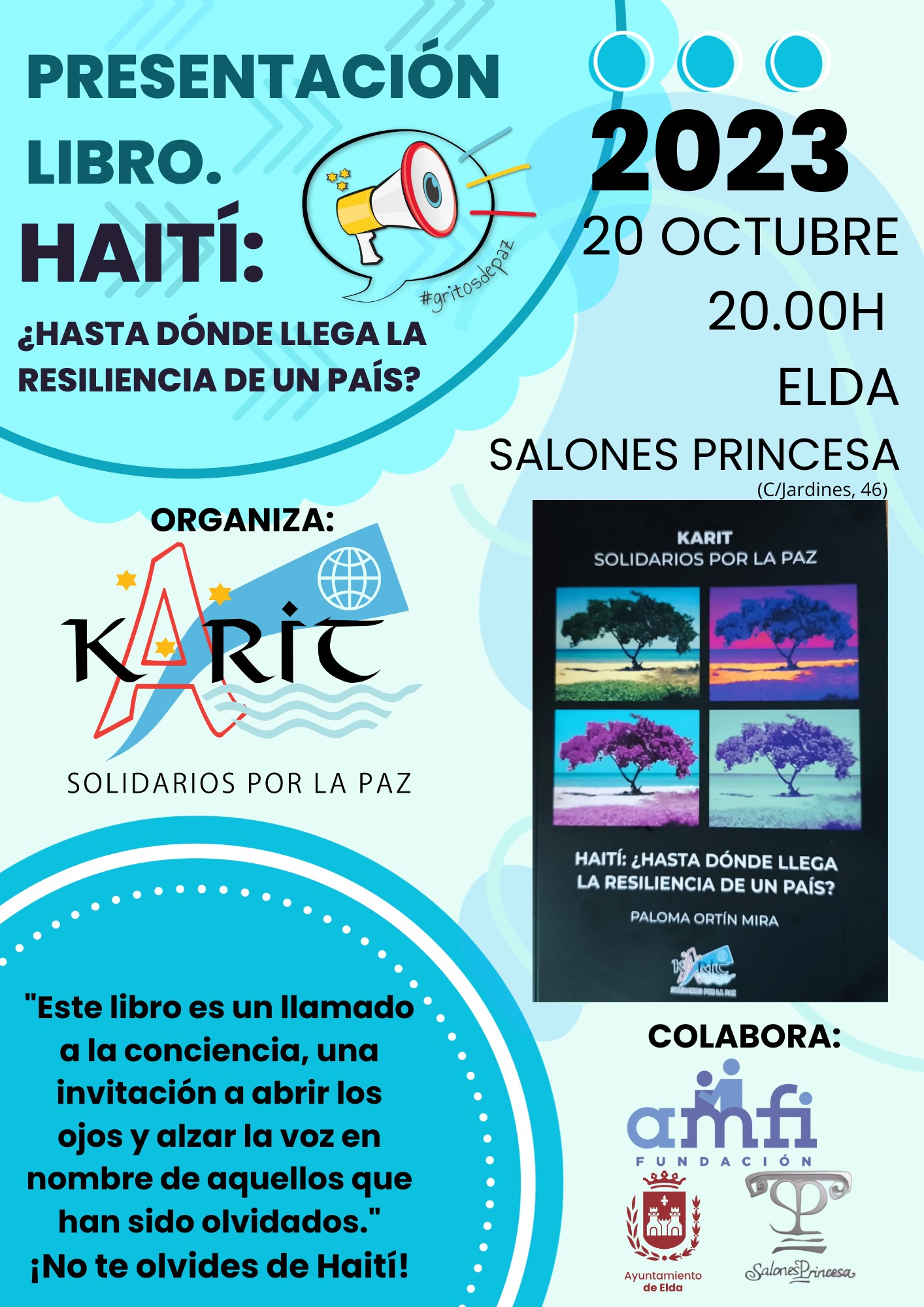 La Concejalía de Solidaridad ha organizado la presentación del libro ‘Haití, ¿hasta dónde llega la resiliencia de un país?’, una actividad que se lleva a cabo en colaboración con la ONG Karit Solidarios por la Paz. El libro es obra de Paloma Ortín Mira, técnica de educación de la mencionada ONG, y es una llamada a la acción y una oportunidad para entender mejor la realidad de Haití.