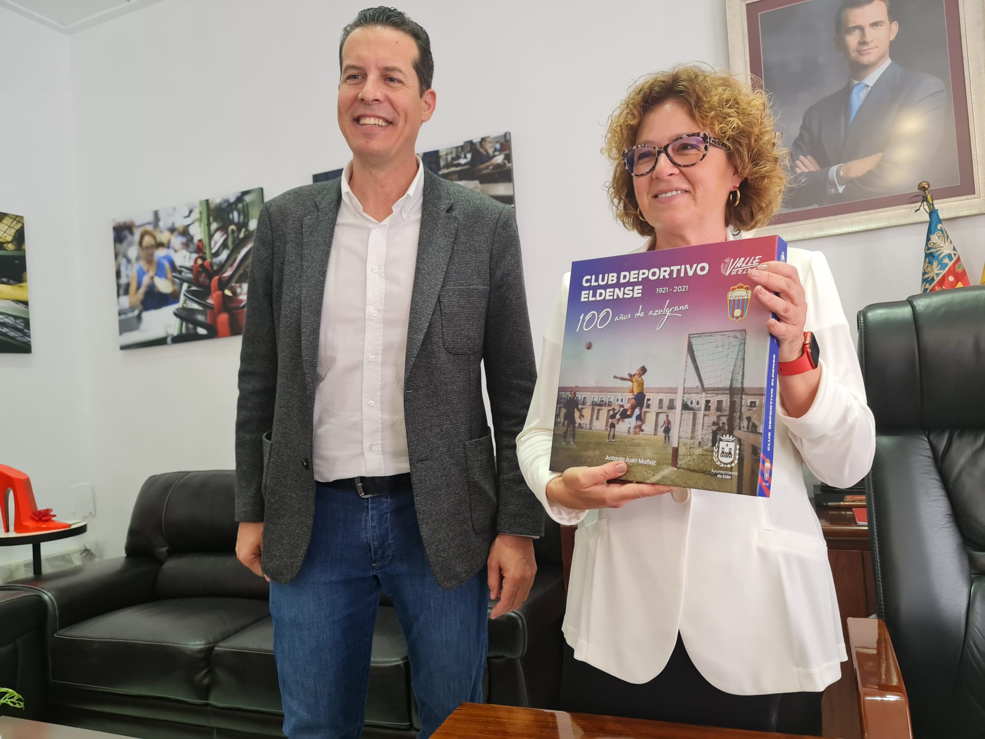 El alcalde de Elda, Rubén Alfaro, ha recibido hoy a la consellera de Innovación, Universidades, Ciencia y Sociedad Digital, Josefina Bueno, quien ha visitado Elda para reunirse con responsables de las sedes universitarias de la ciudad, así como con una representación del tejido empresarial eldense. Antes de asistir a la reunión del Consejo Rector de la EURLE, la consellera ha firmado en el Libro de Honor de la ciudad.